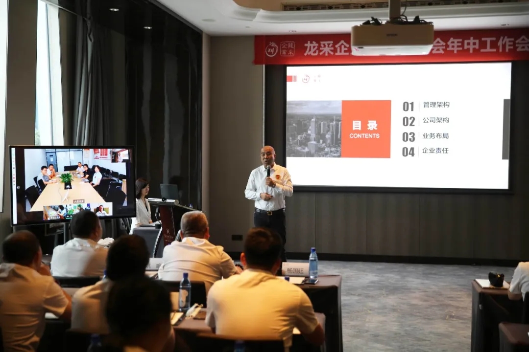 龍采企業董事長/總裁楊國廷首先做了龍采企業年中工作總結,并結合后疫情階段行業現狀及企業發展特點作出戰略布局。他強調要進一步完善管理架構,優化管理流程,以五大管理委員會為企業發展基點,強化管理效能。同時深化互聯網+企業服務、互聯網+企業辦公、互聯網+體育培訓、互聯網+商貿四個核心業務體系,推進銷售、研發、服務、品牌等環節的良性循環,實現企業創效正能量增長,打造領先責任型企業。
