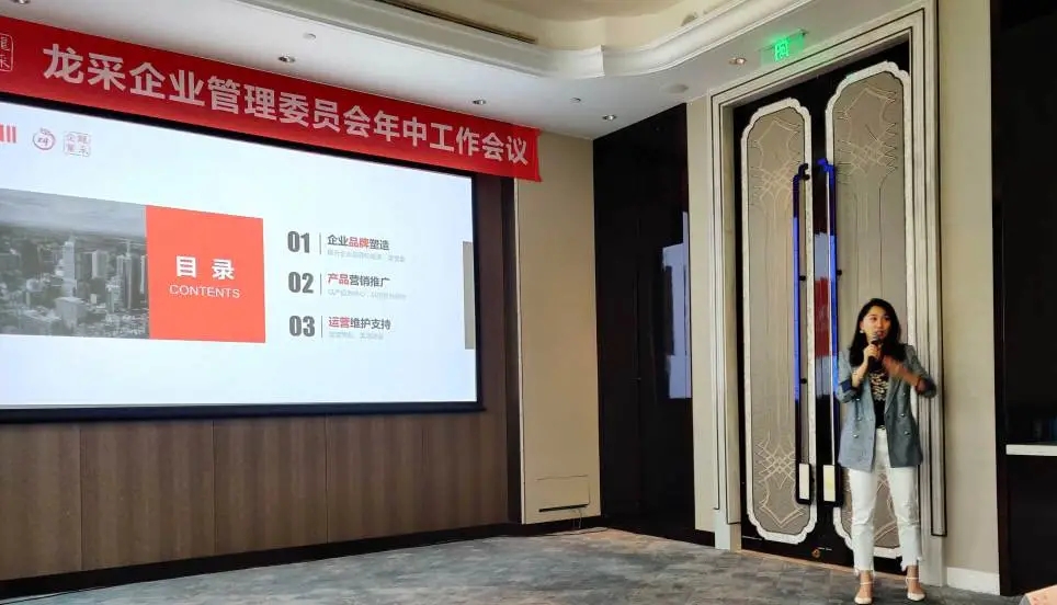 龍采企業總裁助理汪路瑤從企業品牌塑造、產品營銷推廣、運營維護支持三個角度出發,進行了詳細分享。具體闡述了企業品牌營銷的矩陣鋪設,企劃工作在產品營銷、銷售轉化以及各項運維環節的支持效能,進一步促進宣傳企劃于企業運營各領域的深度認知融合。